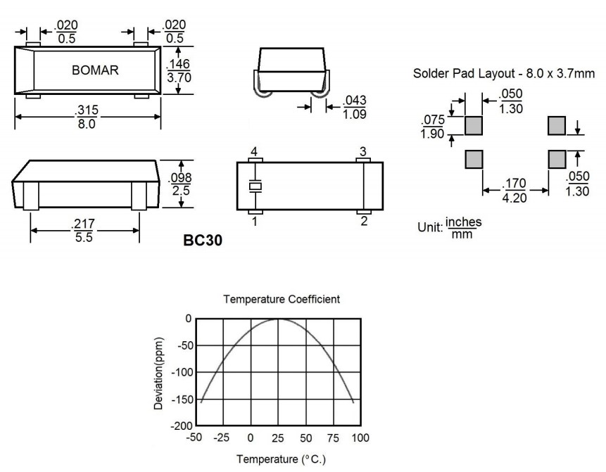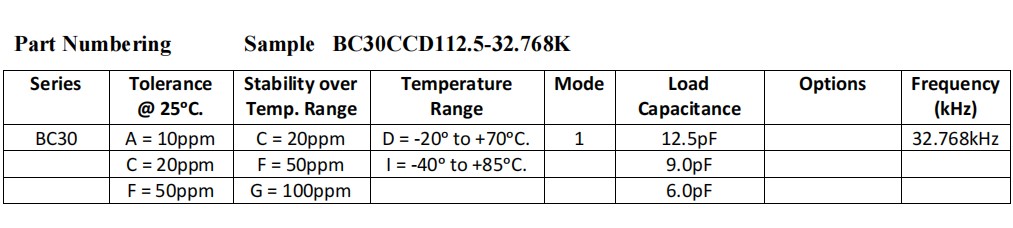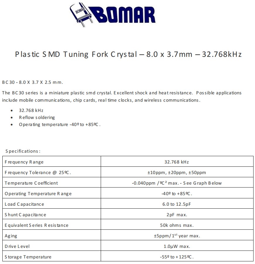 32.768KHz,BC30CCD112.5-32.768K,8038mm,Bomar品牌,BC30,實時時鐘晶振,參數(shù)表