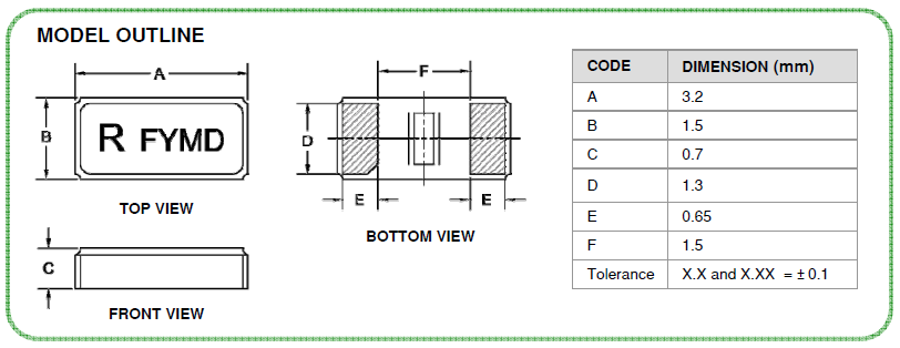 | 頻率溫度特征 | f_tem | ±30 × 10-6/-20°C ~ +70°C | 超出標準的規格請聯系我們. |