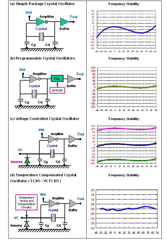 “1TJF090DP1A000A”,當把石英共振子與振蕩線路或集成電路(IC)一起整合在一個封裝內, 由外部提供電源電壓, 形成一個主動組件輸出頻率信號, 就是所謂的石英晶體振蕩器. 石英晶體振蕩器可以藉由單一封裝組件內部不同的振蕩線路及輸出線路, 提供不同特性需求的參考頻率(reference frequency). 例如有 石英頻率振蕩器SPXO ( Simple Package Crystal Oscillator ) 或稱為 CXO ( Clock Crystal Oscillator ), 可程序化石英晶體振蕩器PCXO ( Programmable Crystal Oscillator ), 電壓控制石英晶體振蕩器VCXO ( Voltage Controlled Crystal Oscillator ), 溫度補償石英晶體振蕩器TCXO ( Temperature Compensated Crystal Oscillator ) 及 恒溫槽控制石英晶體振蕩器OCXO ( Oven Controlled Crystal Oscillator ).