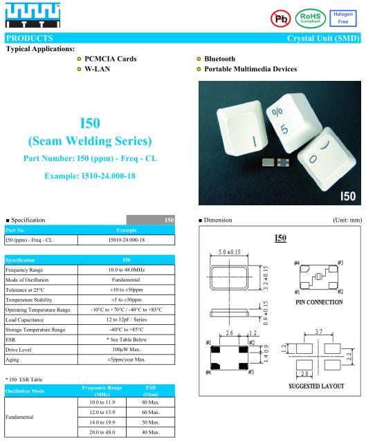 ITTI晶振,I50晶振,I510-24.000-18晶振,小型表面貼片晶振型,是標(biāo)準(zhǔn)的石英晶體振蕩器,適用于寬溫范圍的電子數(shù)碼產(chǎn)品,家電電器及MP3,MP4,播放器,單片機(jī)等領(lǐng)域.可對(duì)應(yīng)8.000MHz以上的頻率,在電子數(shù)碼產(chǎn)品,以及家電相關(guān)電器領(lǐng)域里面發(fā)揮優(yōu)良的電氣特性,滿足無鉛焊接的回流溫度曲線要求.