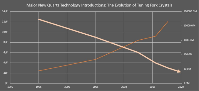 摩爾定律是眾所周知的預測,即芯片上安裝的晶體管數量每兩年翻一番,在過去的50多年里已經發展了好幾次.物聯網的興起表明需要小型化和低功耗石英晶振,摩爾定律有助于不斷爭奪更長的電池壽命.
