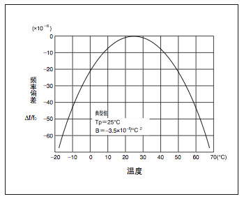 “Q-SC32S03220C5AAE”音叉型石英晶振的頻率溫度特性如左側(cè)的曲線圖所 示,顯示了以+25°C為頂點(diǎn)的負(fù)向2次方程曲線。 溫度范圍越寬,則頻率的變化量也越大,因此,需要 考慮一下所使用環(huán)境的溫度范圍和必要的精度.