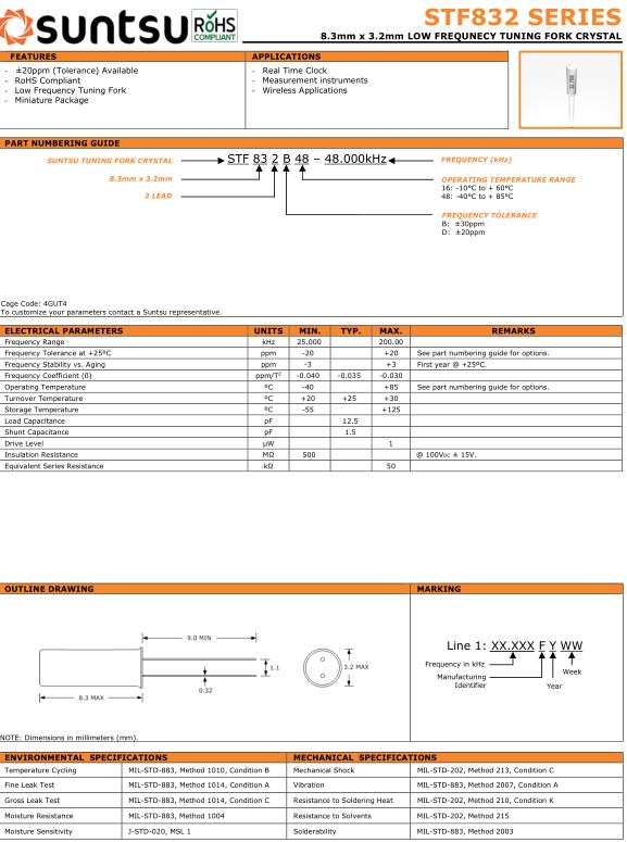 Suntsu晶振通過自身的努力,不斷創新的精神,生產大量的優質晶振產品,包括石英晶體振蕩器,溫補晶振,OSC差分晶振等元件.Suntsu晶振,STF832晶振,STF832B48-26.000kHz晶振.