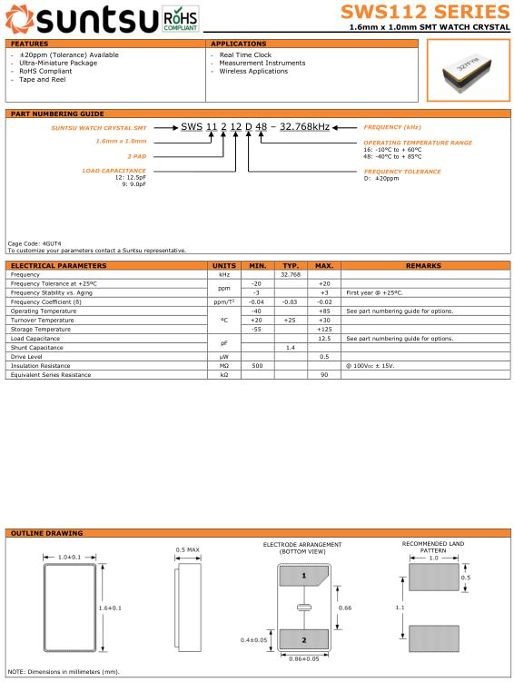 Suntsu晶振,SWS112晶振,SWS11212D48-32.768kHz晶振,貼片晶振本身體積小,超薄型石英晶體振蕩器,特別適用于有目前高速發展的高端電子數碼產品,因為晶振本身小型化需求的市場領域,小型,薄型是對應陶瓷振蕩器(偏差大)和普通的石英晶體振蕩器(偏差小)的中間領域的一種性價比較出色的產品.產品廣泛用于筆記本電腦,無線電話,衛星導航SSD,USB,Blu-ray等用途,符合無鉛焊接的高溫回流焊曲線特性.