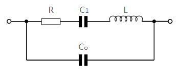為了分析石英晶體諧振器的電響應(yīng),將其描述為替換石英晶體諧振器所需的等效電氣元件通常是有用的.然后可以使用該等效電路分析其響應(yīng)并預(yù)測(cè)其性能,如下圖所示: