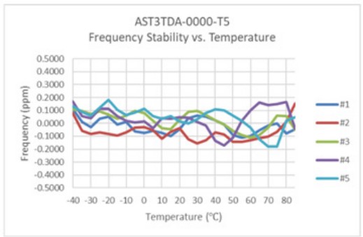 圖2:ast 3 TDA-0000-T5的頻率穩(wěn)定性與溫度的關系