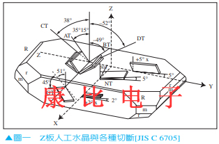 水晶依照切割方向的不同,會(huì)得到各種不同的振動(dòng)模式.圖一為各種切斷圖.在各種的切割之中,ATCUT在高頻上的利用具有獨(dú)佔(zhàn)性的地位.理由說(shuō)明如下;
