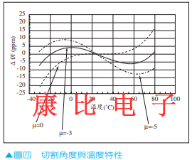 4.溫度特性的管理較易.ATCUT依據(jù)切割角度的不同會(huì)影響晶振溫度特性.從角度上加以控制,就可得到預(yù)期的溫度特性.輪廓與Bending必須要求切割角度以及晶片外型尺寸的邊比管理,在處理上則較為繁雜.圖四為切斷角度與溫度特性圖.