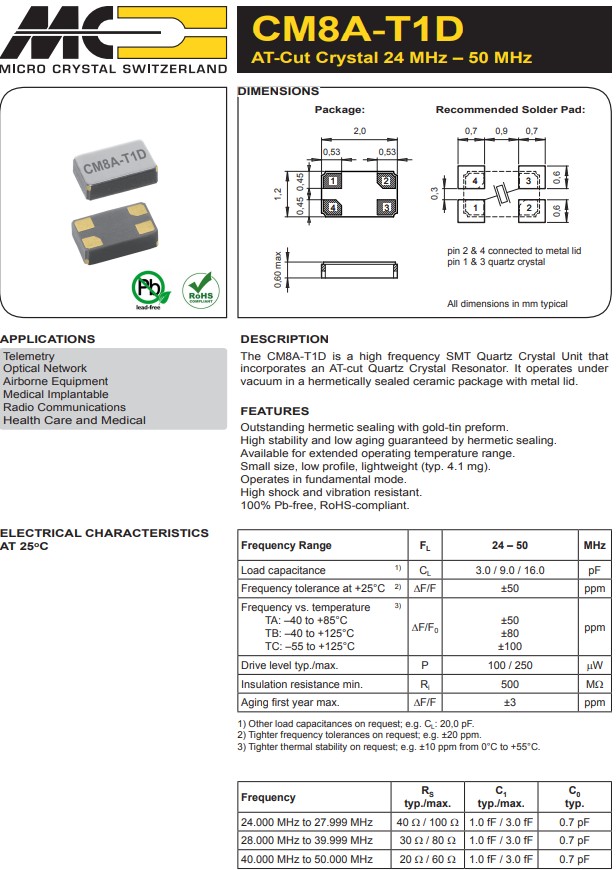 更多>>CM8A-T1D高頻SMT石英晶體單元集成了AT切割石英晶體諧振器