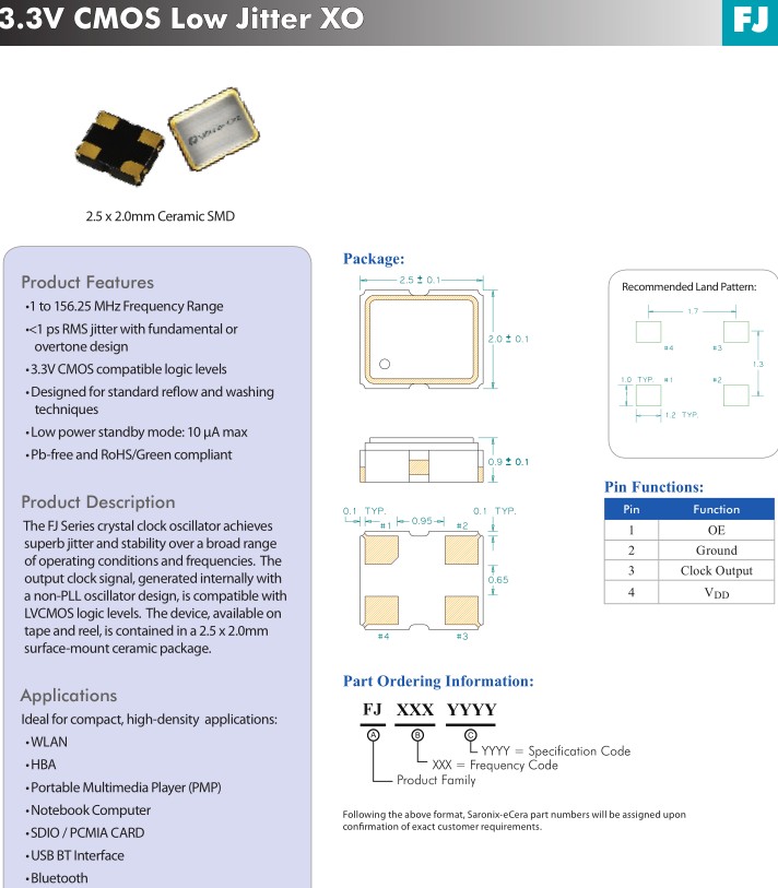 | FJ2400011 | Diodes晶振 | SaRonix-eCera™ FJ | 24MHz | ±50ppm | -40°C ~ 85°C |