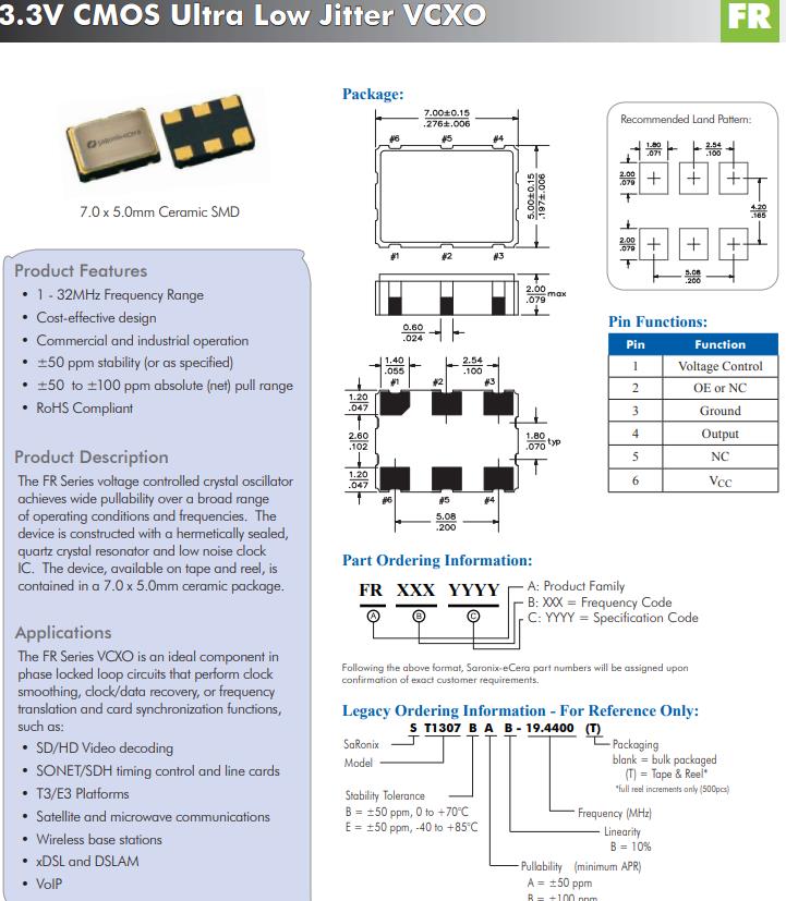 FR系列壓控振蕩器在廣泛的范圍內實現廣泛的可拉性操作條件和頻率。裝置由一個密封的,石英晶體諧振器和低噪聲時鐘該設備可在磁帶和卷軸上使用包含在7.0 x 5.0mm陶瓷封裝。