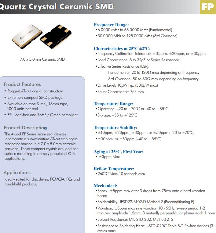 | FP0800056Z | Diodes晶振 | SaRonix-eCera™ FP | MHz Crystal | 8MHz | ±30ppm |
