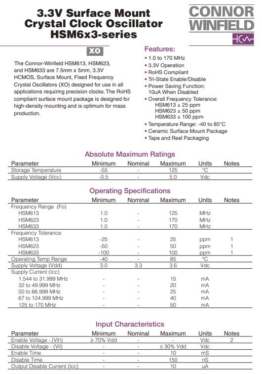 | HSM613-125.0M | Connor-Winfield振蕩器 | HSM6 | 125MHz | -40°C ~ 85°C |
