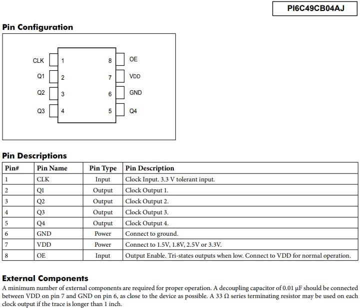 PI6C49CB04AJ是一款工業級低偏移1對4扇出緩沖器,PI6C49CB04AJWEX,有源晶振,ECERA晶振