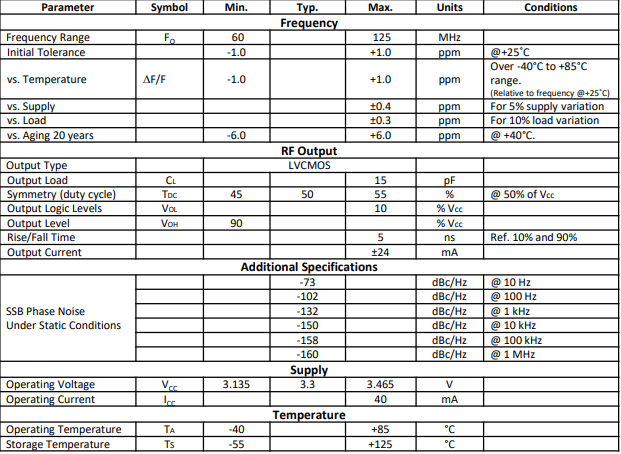 高穩定性+/-1ppm,保證20年內+/-6ppm