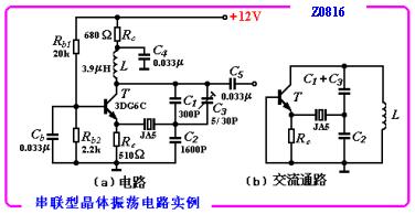 晶振一般采用電容三端式(考畢茲) 交流等效振蕩電路;實際的晶振交流等效電路,其中Cv是用來調節振蕩頻率,一般用變容二極管加上不同的反偏電壓來實現,這也是壓控作用的機理;把晶體的等效電路代替晶體后其中串聯電路就會是晶體的等效電路.