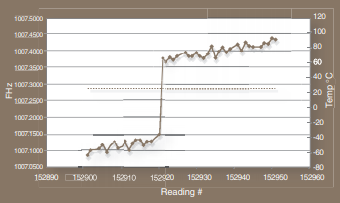 圖4.C/分鐘溫度斜坡期間的20HzTCXO頻率.