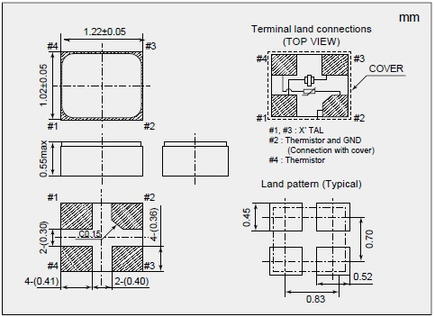 • 在同一氣密室內(即晶振體內)內置水晶片與溫度傳感器(熱敏電阻),更能檢出與水晶片相近的溫度.由此,相比以往的晶體諧振器,可以改善其頻率溫度補正.