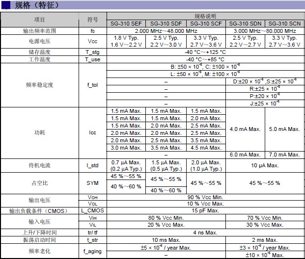 晶體振蕩器規(guī)格