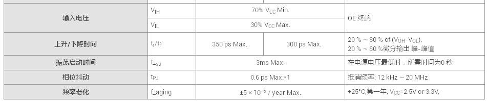 | 頻率老化程度 | f_age | ±3x10-6 | +25±3°C,第一年 |