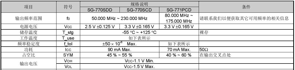 差分晶振SG-770SCD,SG-770SDD.晶體振蕩器SPXO,交換機(jī)晶振.“SG-770SCD 106.2500ML3”,低抖動差分晶振7050系列是通過使用PLL技術(shù)和AT晶體單元來實(shí)現(xiàn)寬的頻率范圍.頻率可高至:50~230MHZ. 振蕩啟動時(shí)間(t_str)為3ms Max. 當(dāng)電源電壓最低時(shí),所需時(shí)間為0 秒. 該款差分晶振的上升/下降時(shí)間(tf/tf)為350 ps Max.