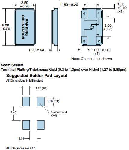 在一個不同擴張系數電路板(環氧玻璃)上焊接陶瓷封裝貼片晶振時,在溫度長時間重復變化時可能導致端子焊接部分發生斷裂,請事先檢查焊接特性。