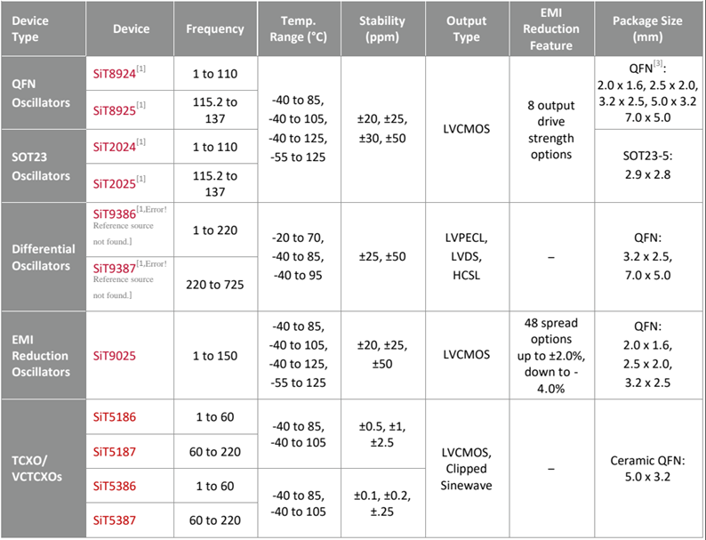 下表列出了SiTime[8]的汽車微機(jī)電系統(tǒng)有源晶體系列.