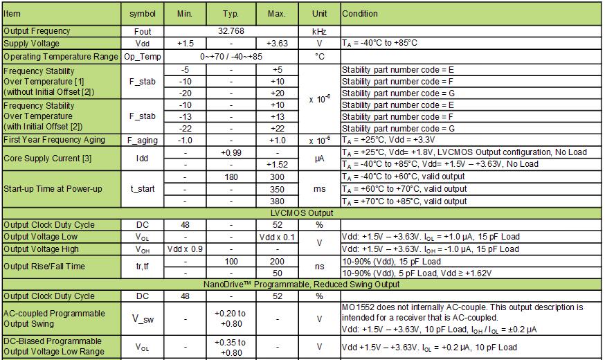 公司在石英晶振的研發、生產方面投入了大量的資源,具備了多年經驗.日本大真空晶振已經成為晶體行業的知名品牌.根據市場需求研發了新型MEMS振蕩器KHZ系列.以及KHZ溫補晶振.MO1552振蕩器是大真空集團研發的主要適用于:智能電表、健康和健康監視器、每秒的計時脈沖、RTC的參考時鐘等相關產品.頻率為32.768KHZ.精度選擇主要有:±5ppm、±10ppm、±20ppm. 超低功耗:+ 990 nA(典型值).內部濾波消除了外部VDD旁路電容.