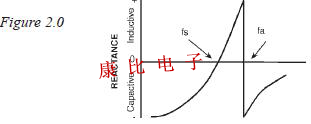 從圖2.0可以明顯看出,石英晶體單元有兩個零相位頻率.第一個或兩個頻率中的較低一個是串聯(lián)諧振頻率,通常縮寫為Fs.零相位兩個頻率中的第二個或更高的頻率是并聯(lián)或反諧振頻率,通常縮寫為Fa.串聯(lián)和并聯(lián)諧振頻率在振蕩器電路中都表現(xiàn)出電阻性.在串聯(lián)諧振點(diǎn),電阻最小,電流最大.