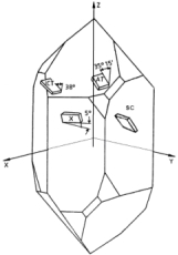 不同的石英晶體切割可以制成具有不同的性質(zhì)。切口由圍繞晶軸的兩個旋轉(zhuǎn)角度phi和theta定義。最常見的切割是單旋轉(zhuǎn)AT切割(φ= 0°)和雙旋轉(zhuǎn)SC切割(φ= 22°)。兩種情況下的θ角都在34°左右。其他雙旋轉(zhuǎn)切割如MSC-,IT-,F(xiàn)C-,LD-也適用于特殊應(yīng)用。